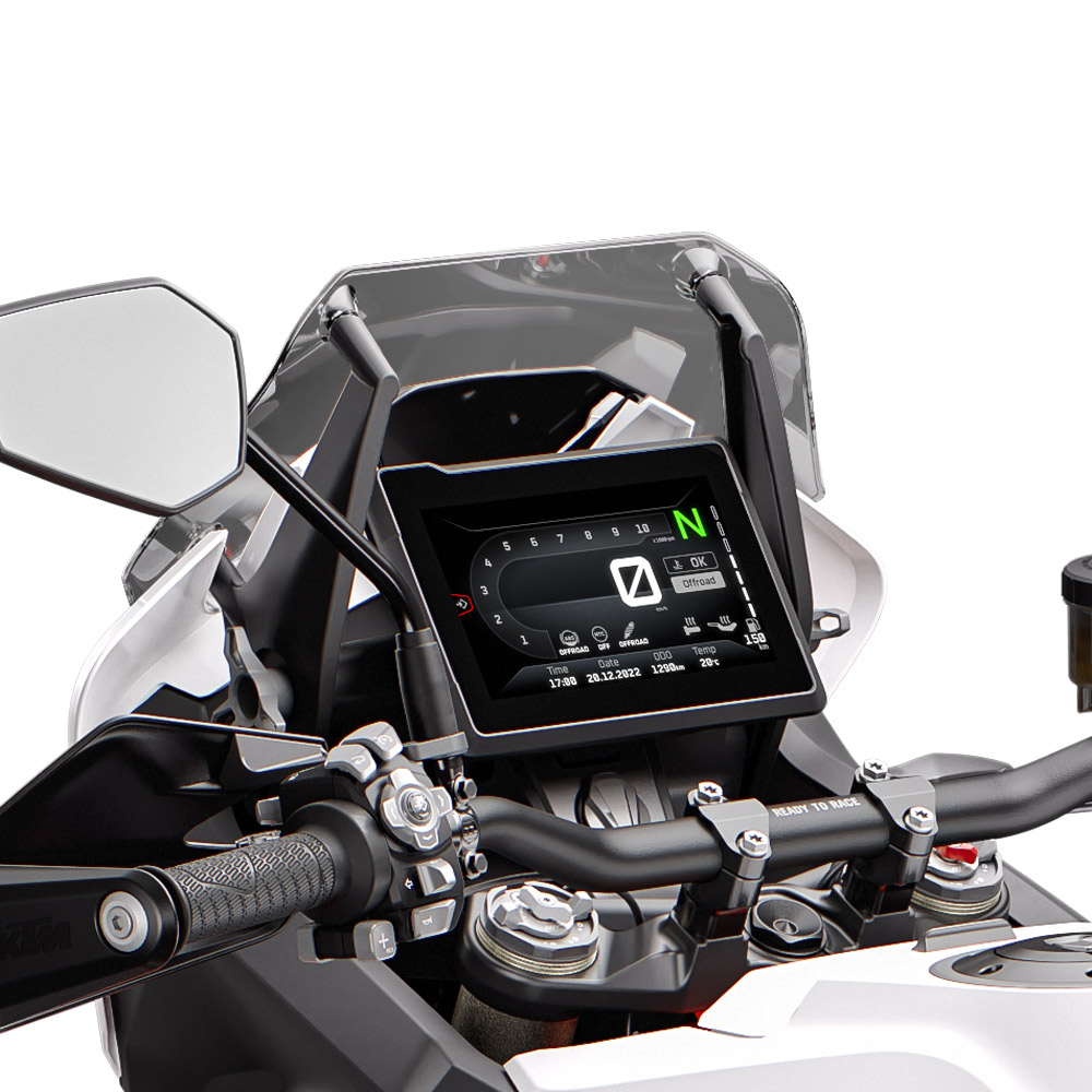 Կառավարման էկրանը 7 դյույմանոց TFT էկրան է, որը պաշտպանում է քերծվածքներից։ Պարզ գրաֆիկայի և ընթեռնելիության առումով՝ արկածախնդիրները կարող են թռիչքի ժամանակ մուտք գործել տեղեկատվության բաժին՝ արագ և հեշտ, առանց բարդ մենյուների։ Սա հնարավոր է շնորհիվ ղեկի վրա գտնվող 6-ուղղության անջատիչի և արագ ընտրության կոճակների։ Կապակցումը նույնպես ապահովված է KTMconnect-ի միջոցով, որը Bluetooth-ով միանում է Turn-by-Turn+ նավիգացիայի, երաժշտության և նույնիսկ զանգերին պատասխանելու համար։ TFT էկրանը նաև կարգավորվող է։